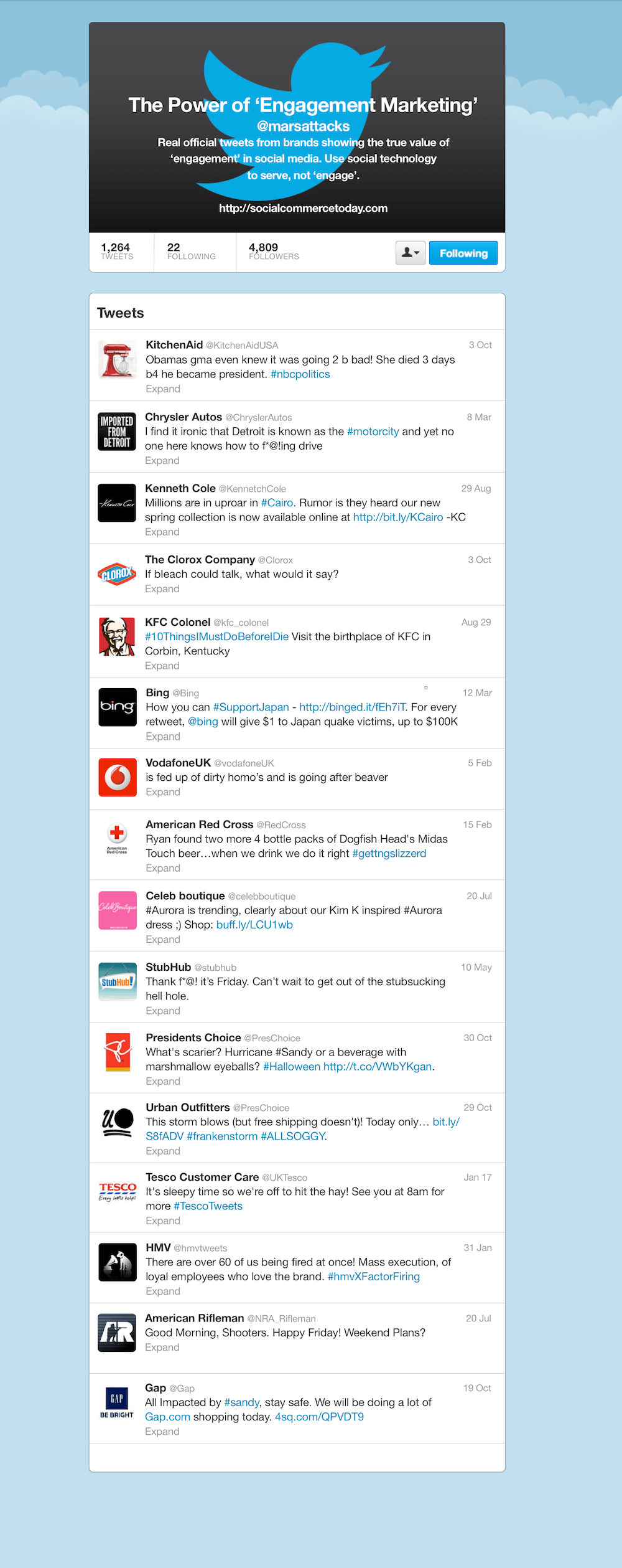 16 ejemplos de malas prácticas de marketing de marcas en Twitter (click para ampliar)