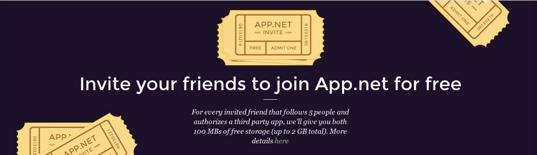 La nueva promoción de App.net permite que los usuarios que ya se han registrado y que al menos tengan 40 contactos en su red puedan disponer de invitaciones exclusivas para regalar a quienes ellos quieran e invitar a los amigos sociales más reacios a unirse a la aplicación social en la que el usuario será lo primero.