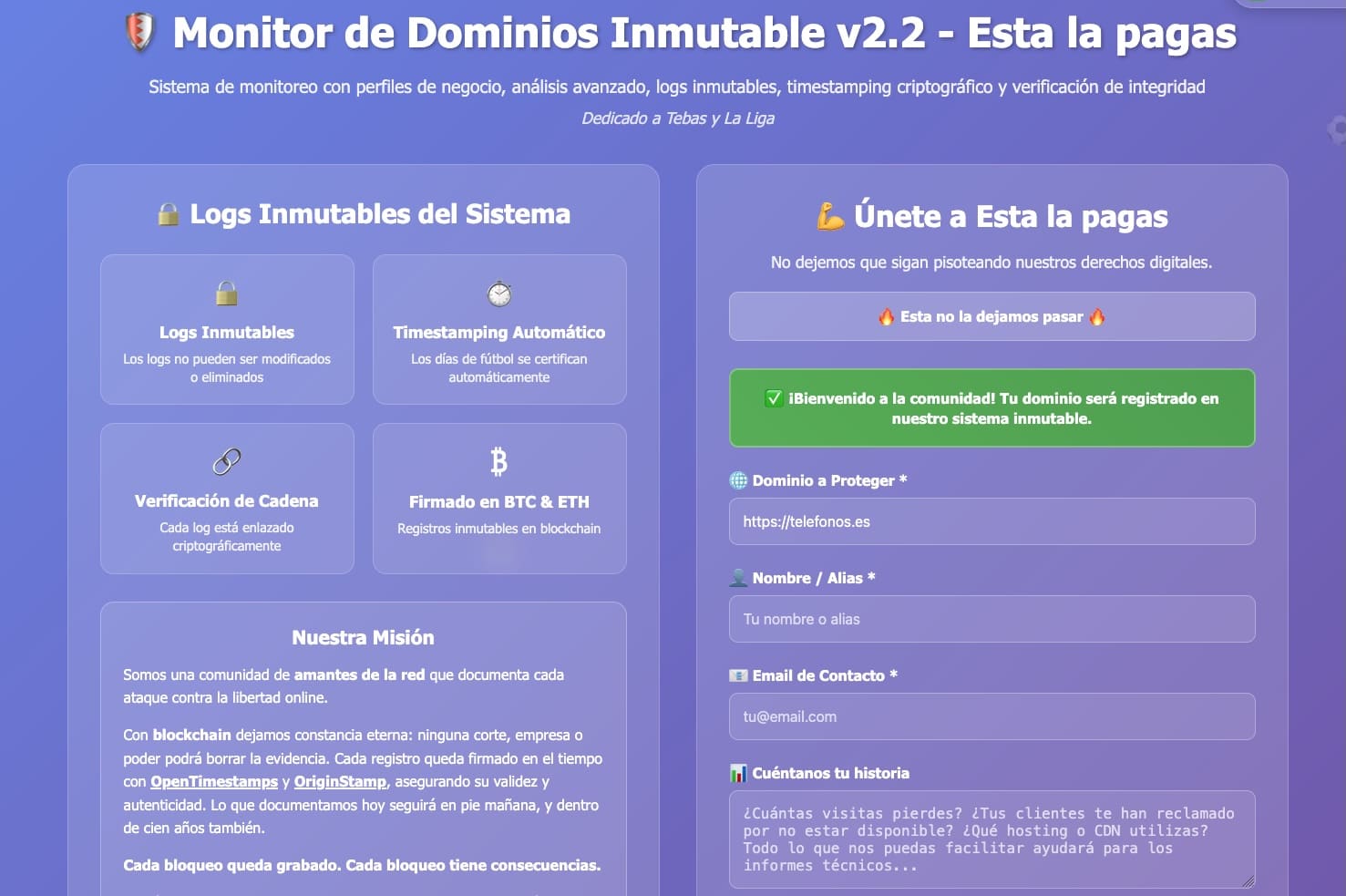 Aquí entra en escena estalapagas.com, un proyecto ciudadano que permite a los propietarios de páginas web certificar legalmente que sus sitios han sido bloqueados durante un partido.