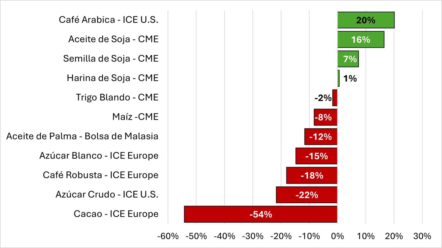 En general, el año 2025 marca un cambio desde un contexto de inflación generalizada hacia uno donde los fundamentos productores juegan un papel crucial en la determinación de precios. Para 2026, se espera una mayor disparidad en el comportamiento de los mercados, que deberán adaptarse a las dinámicas de oferta, políticas agrícolas y energéticas, así como al ritmo de la demanda global.