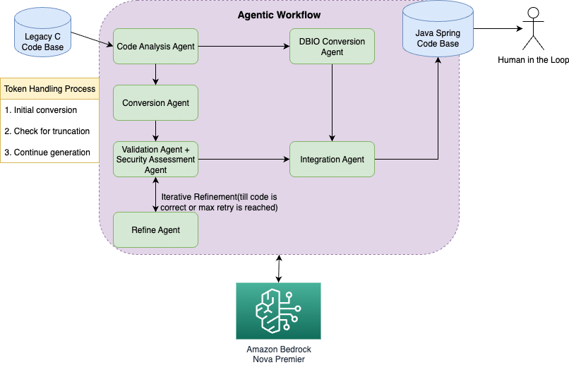 Un enfoque innovador en este proceso utiliza la API Converse de Amazon Bedrock junto con Amazon Nova Premier, permitiendo la migración de código C heredado a aplicaciones modernas basadas en Java y el marco Spring. Este enfoque sistemático descompone el proceso en roles de agentes especializados, cada uno cumpliendo funciones específicas dentro de un flujo de trabajo estructurado. Entre los beneficios se incluyen la reducción de tiempo y costos de migración, mejora en la calidad del código, y una integración fluida con los servicios de AWS.