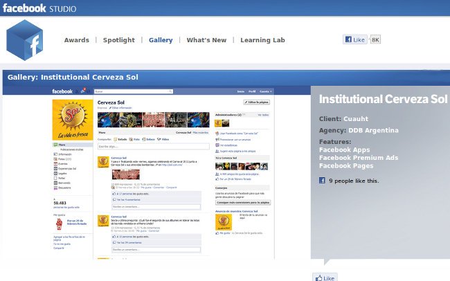 Facebook Studio es una página en la que nos encontraremos información sobre las campañas más exitosas en Facebook. Y podremos navegar por sus más mínimos detalles: desde el motivo de creación de dicha campaña, pasando por sus características más concretas y los beneficios finales que le ha otrogado al anunciante.