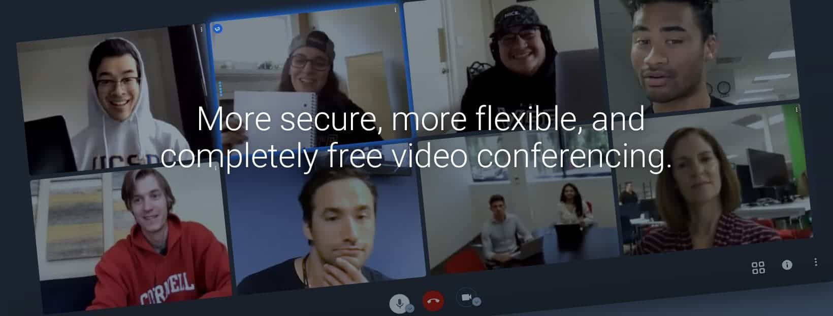 - Meet.jit.si: servicio Cloud gratuito basado en navegador web bajo el protocolo WebRTC, alojado en servidores de internet mantenidos por Jitsi.org con el apoyo de la compañía matriz 8×8.