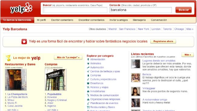Hoy desde Redes Sociales os anunciamos la llegada oficial de la red social de recomendaciones de negocios a España. No os preocupéis si no os suena el nombre, porque aunque se trate de un servicio muy conocido en el territorio norteamericano, lo cierto es que el reto del mundo apenas es conocido. Yelp, ha llegado no solo a España, en su búsqueda por globalizar el servicio, sino que se ha estrenado también en Francia, Alemania, Austria y Holanda.